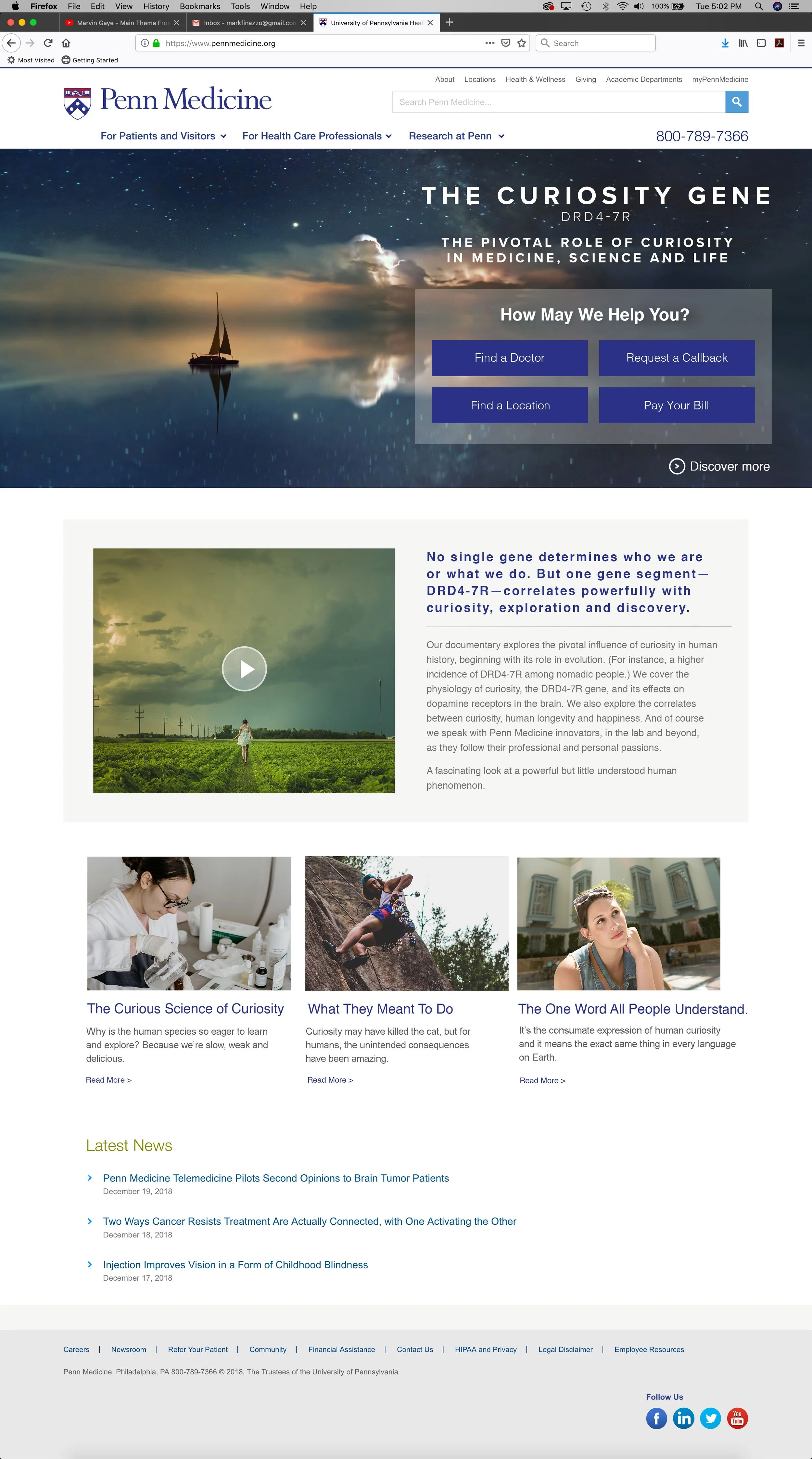 Studies show that people who carry the DRD4-7R gene variant exhibit a range of positive affects. They’re more open to new ideas, more likely to accept challenges, more likely to explore new places. The recent discovery of the curiosity gene gave us a handy analog for the ongoing genetic innovations at Penn.